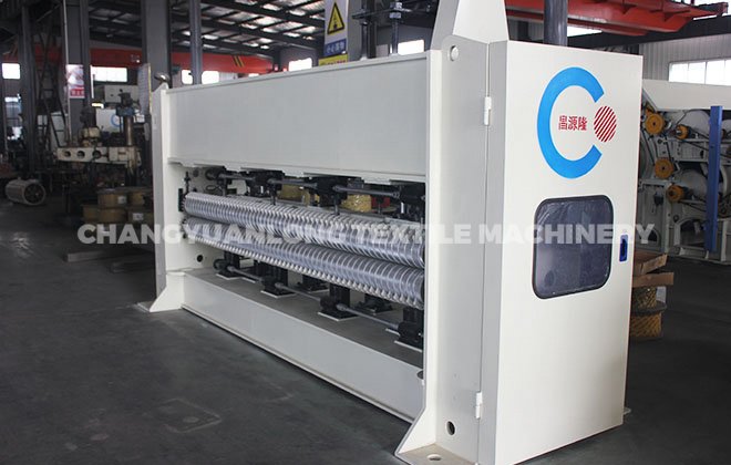6. CYLZC-针刺机:该机采用新型钢件结构,活动梁采用铁板制成,活动梁、针床梁、主轴都经调质、回火做定性处理。剥毛板、针床梁用蜗轮箱升降,方便调节刺针深度,针板为气压控制,电脑数控布针,进出辊、剥棉板和托棉板镀铬,连杆采用球墨铸铁加工成型。导向轴用 45#钢锻打,经过热处理精加工。